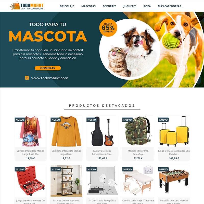 Nuestra tienda online actúa como un completo bazar que satisface todas las necesidades de la familia, ofreciendo una vasta variedad de categorías como mascotas, hogar, bricolaje, juguetes, moda, deportes, regalos, ocio, salud, bebés, vehículos, etc. Todo esto, listo para que comiences a vender desde el primer día.