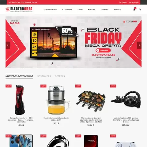 ¿Estás buscando una tienda online rentable y lista para vender electrónica e informática sin complicaciones? ElectroArea.es es la solución perfecta para ti. Esta tienda está conectada directamente al catálogo dropshipping de MegaSur, uno de los mayores proveedores de productos de informática, electrónica y telefonía en España. Con acceso a más de 20.000 referencias de marcas reconocidas como Apple, Sony, y Samsung, tendrás a tu disposición un amplio inventario de productos listos para vender sin necesidad de gestionarlos tú mismo.