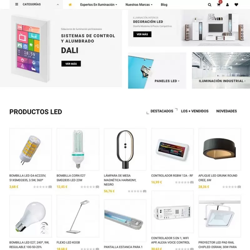Tienda online especializada en iluminación LED, lista para vender en modalidad dropshipping.