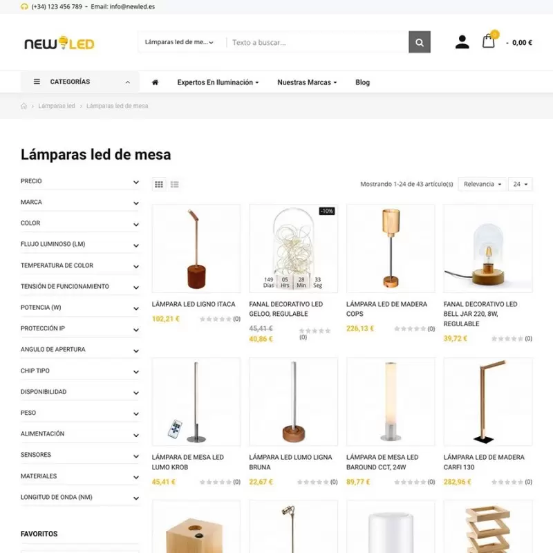 Imprescindible para un catálogo de productos con especificaciones técnicas tan concretas. Filtra por precio, marca, color, potencia, luminosidad, tipo de bombilla, temperatura de color, flujo luminoso, número de leds, longitud de onda y hasta 80 características más que se lo pondrán muy fácil a tus clientes.
