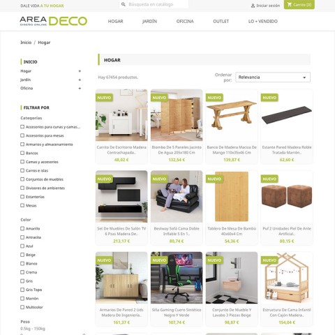 La tienda está configurada para sincronizar el catálogo de muebles del proveedor VidaXL.